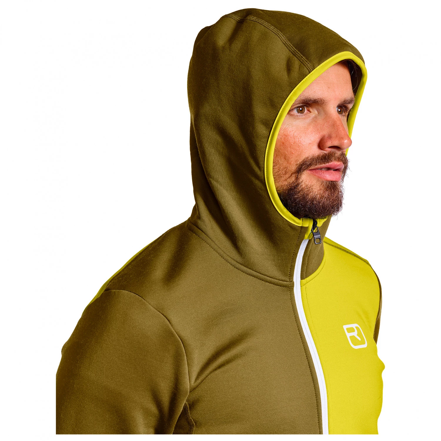 La veste outdoor est équipée de passe-pouces souples et est fabriquée avec le tissu Merino Fleece d’Ortovox. Ce tissu fonctionnel associe du polyester recyclé à de la laine mérinos douce issue d’une production respectueuse des animaux. Le matériau léger est respirant, sèche rapidement et suit chaque mouvement du haut du corps. Avec ses propriétés qui régulent la température et qui empêchent la formation de mauvaises odeurs, la veste en mérinos Fleece Hoody d’Ortovox garantit un max de confort en excursion.