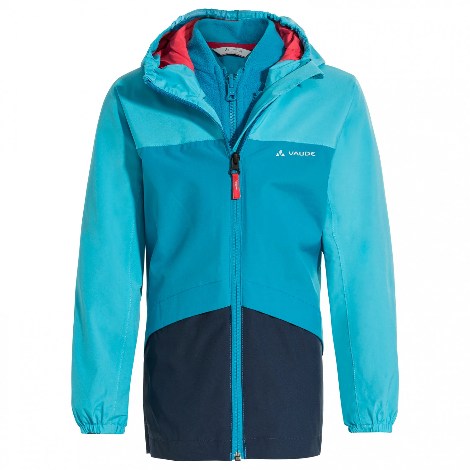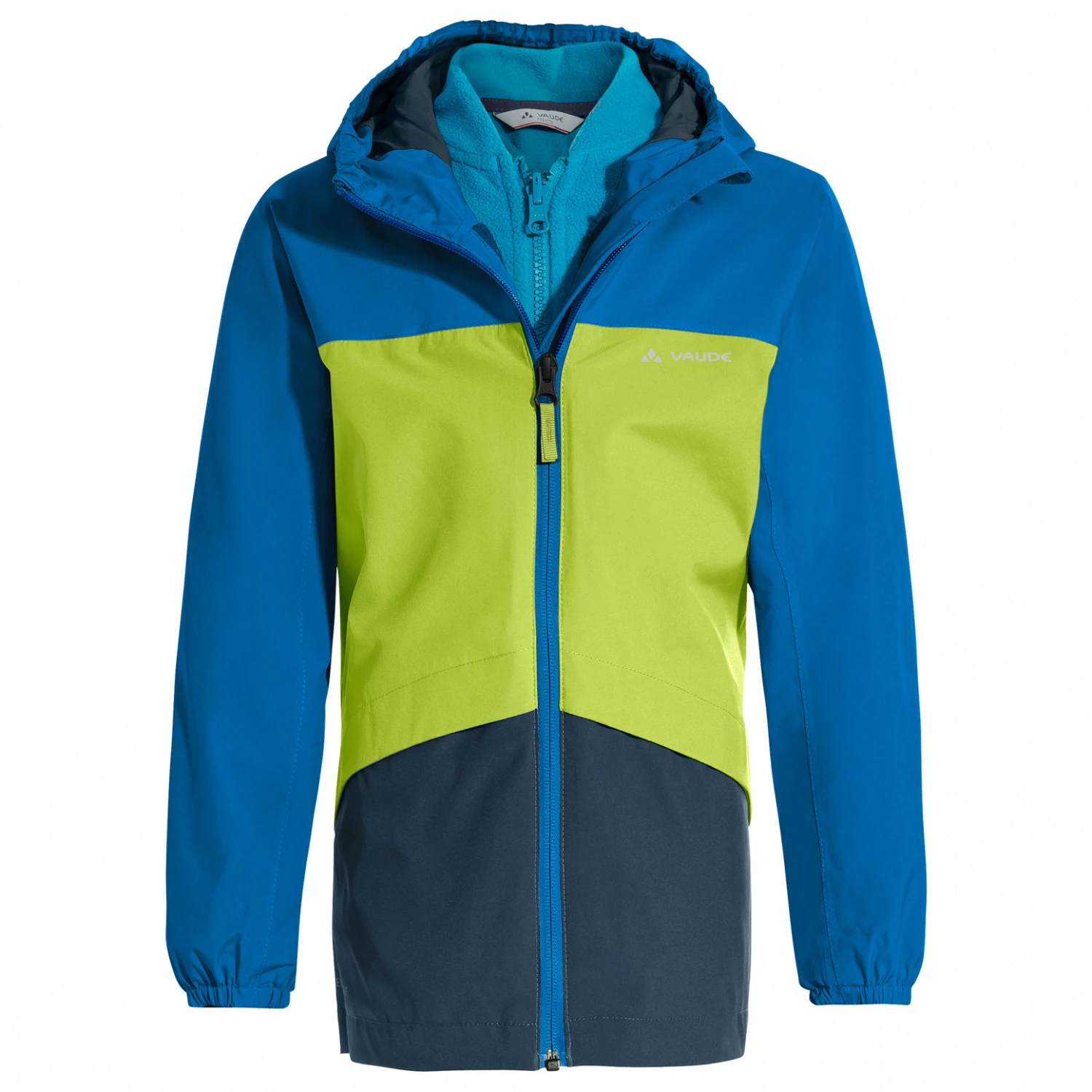 La Kid’s Escape 3in1 Jacket de Vaude est une veste athlĂ©tique pour enfant, qui convient Ă la randonnĂ©e ou au quotidien. La veste 3en1 est impermĂ©able, coupe-vent et respirante. Le matĂ©riau Ă deux couches rĂ©chauffe et la surface est protĂ©gĂ©e par un traitement hydrofuge et antisalissure Eco Finish. Le tissu est par ailleurs robuste et rĂ©sistant, la veste convient donc parfaitement pour les enfants qui aiment ĂŞtre dehors. Grâce aux manches prĂ©formĂ©es, aux bordures Ă©lastiques, ainsi qu’Ă la capuche ajustable, la veste est aussi très confortable.